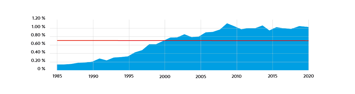 Cet objectif est toujours d’actualité même si certaines années le ratio APD/RNB varie légèrement aux alentours du 1 %, conséquence des réévaluations du RNB en cours d’année.