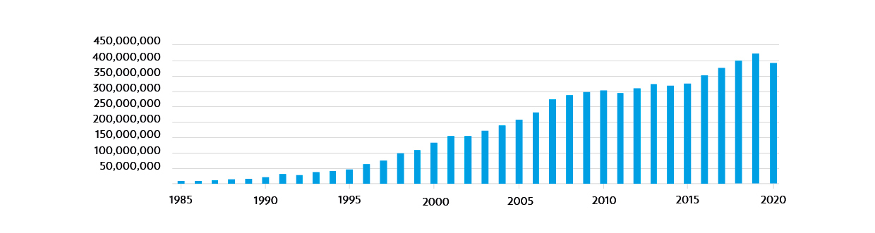 Comme le montre le graphique ci-dessous, l’aide publique au développement luxembourgeoise connut d’abord une croissance lente mais constante.